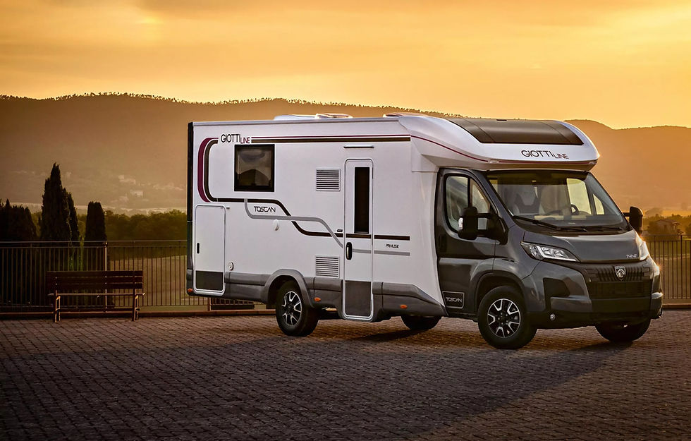 Der Toscan 74GC ist ein geräumiger und vielseitiger Teilintegrierter mit einer Länge von 7,40 Metern , zwei Heckbetten , einem Durchgangsbad und einer separaten Dusche. Der helle Wohnbereich, die umbaubare Essecke und das optionale Hubbett machen dieses Modell ideal für große Gruppen oder lange Reisen. Basierend auf Citroën- oder Peugeot -Mechaniken vereint er Wohnlichkeit und Komfort in einem schlichten und modernen Stil.